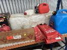 3 x 15 LITRE WATER CONTAINERS, (AS NEW) & 2 x FUEL JERRY CANS, 10 & 20 LITRE