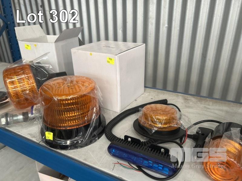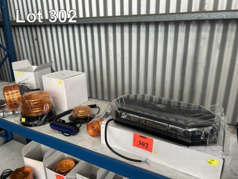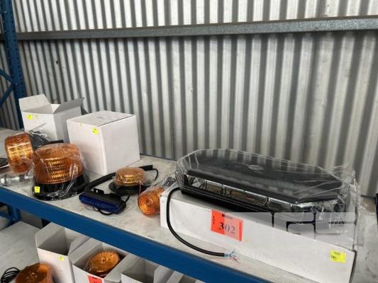 VEHICLE HAZARD WARNING LIGHTS INCLUDING ROOF MOUNT LED MULTI DIRECTIONAL LIGHT, MAGNETIC BASE AMBER BEACON LIGHT, POLE MOUNT AMBER BEACON LIGHT & 3 x ASSORTED