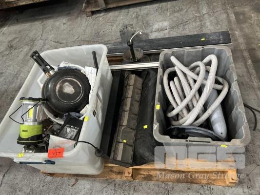 CAMPING GEAR INCLUDING POTS, PANS, TEST, GAS LIGHT, CEILING FAN, OUTDOOR HEATER,