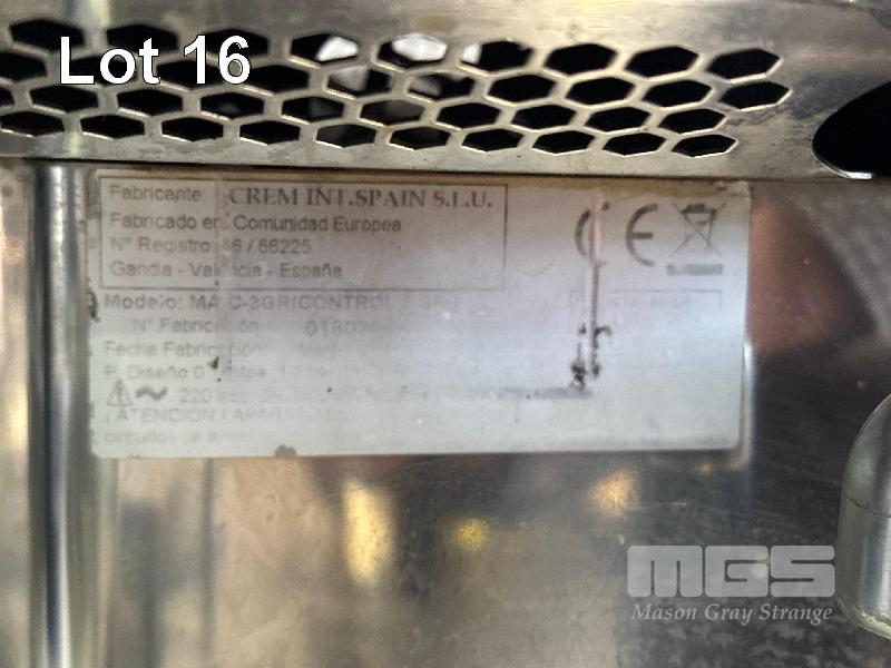 ESPRESSO MACHINE, RUGGERO MOD: MAC-3GR 3 GROUP, 3 HANDLES 240V, 20 AMP WITH WATER FILTER