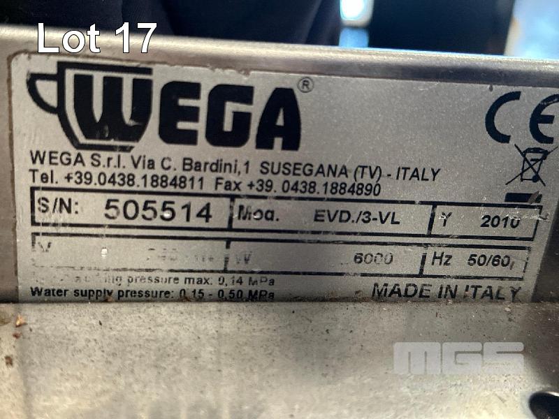 ESPRESSO MACHINE, WEGA MOD: EVD./3-VL DOM: 2010 3 GROUP, NO HANDLES 240V, 20 AMP