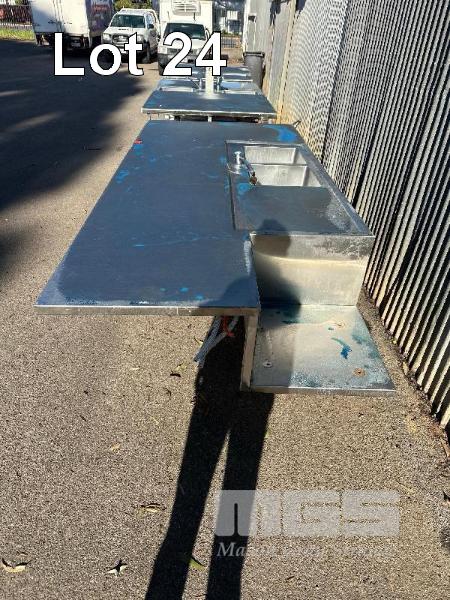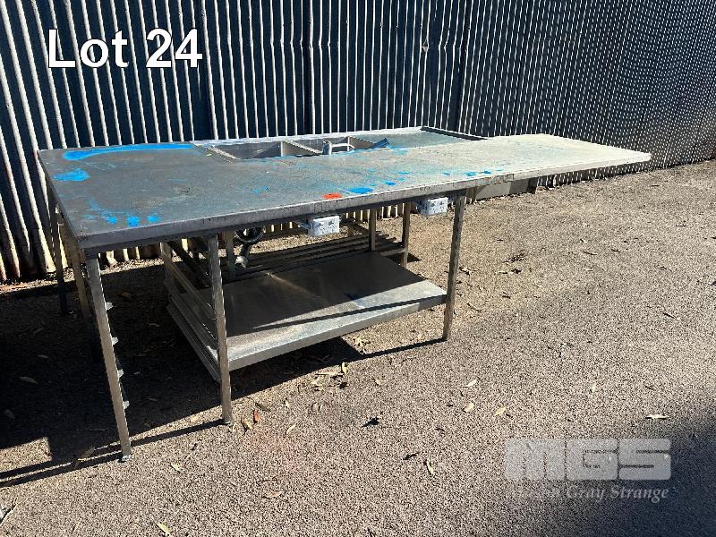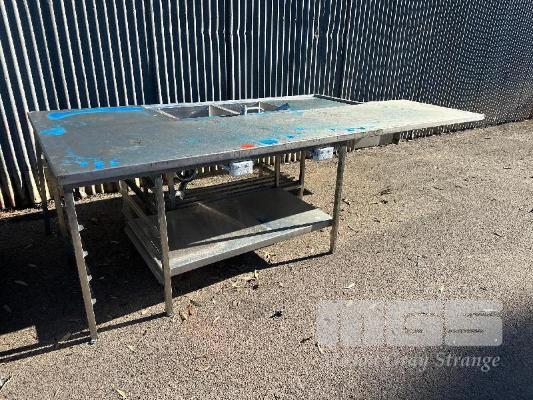 STAINLESS STEEL CENTRE ISLAND BENCH, 3150 x 1400 x 910mm (H), TWIN BOWL