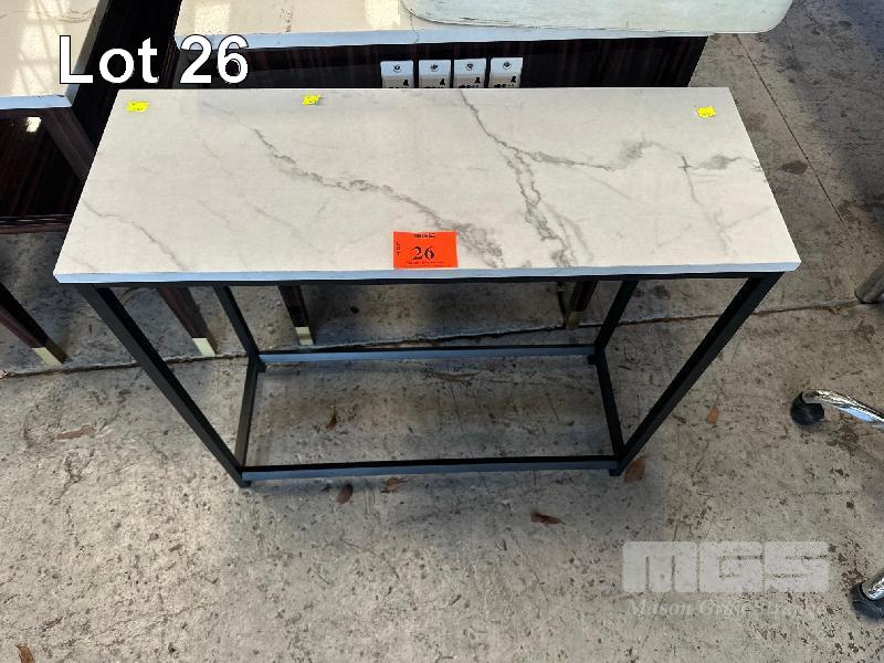 STONE LOOK HALLWAY TABLE, 800 x 300 x 740mm (H) BLACK STEEL FRAME