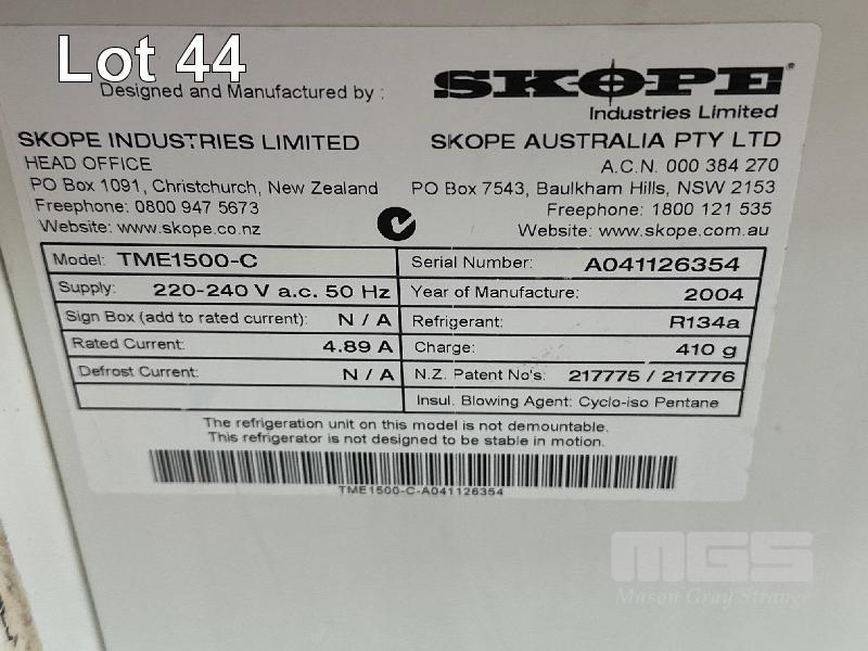 DISPLAY FRIDGE, SKOPE MOD: TME1500-C DOM: 2004 3 DOOR, ILLUMINATED, DRO 240V, 10 AMP