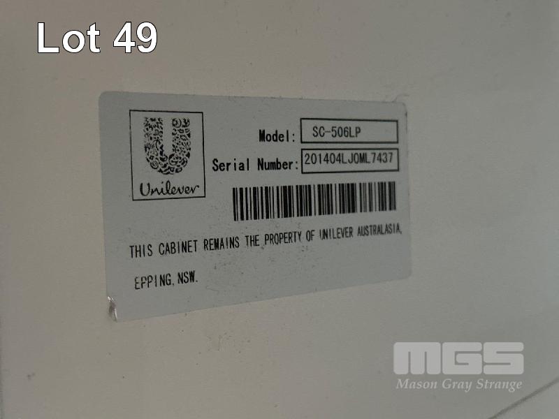 UPRIGHT DISPLAY FRIDGE, UNILEVER MOD: SL-506LP DOM: 2014 510 LITRE 4 TIER 240V, 10 AMP