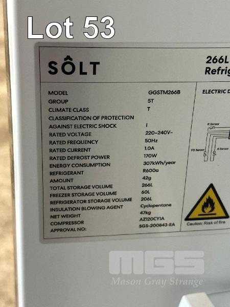 FRIDGE FREEZER, SOLT MOD: GGSTM266B S/NO: L9312201-4122-1310389 CAPACITY: 266 LITRE 240V, 10 AMP PLUG