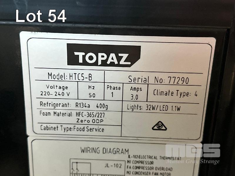 UPRIGHT DISPLAY FRIDGE, TOPAZ MOD: HTCS-B 2 DOOR, 5 TIER, ILLUMINATED, DRO, 4 WAY GLASS 240V, 10 AMP