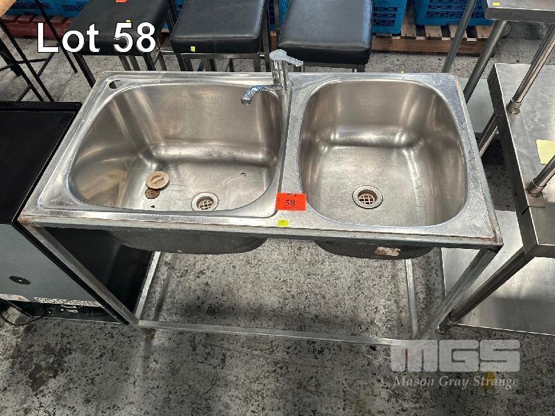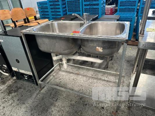 TWIN BOWL STAINLESS STEEL SINK GALV FRAME, 1110 x 590mm