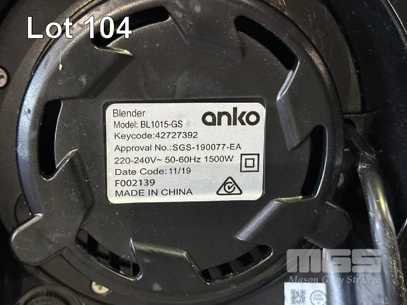 BLENDER, ANKO MOD: BL1015-GS DOM: 2019 240V, 10 AMP