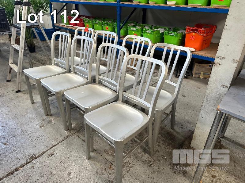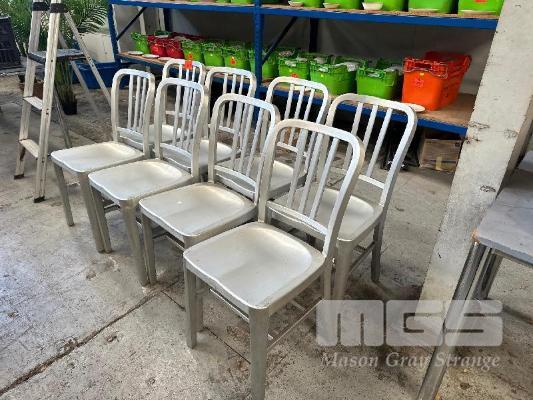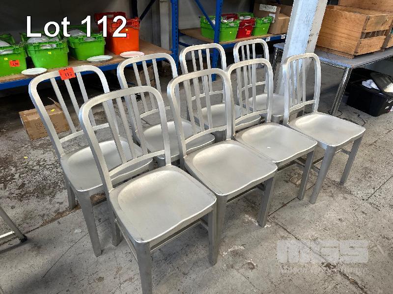 8 x STEEL CAFE CHAIRS, SILVER
