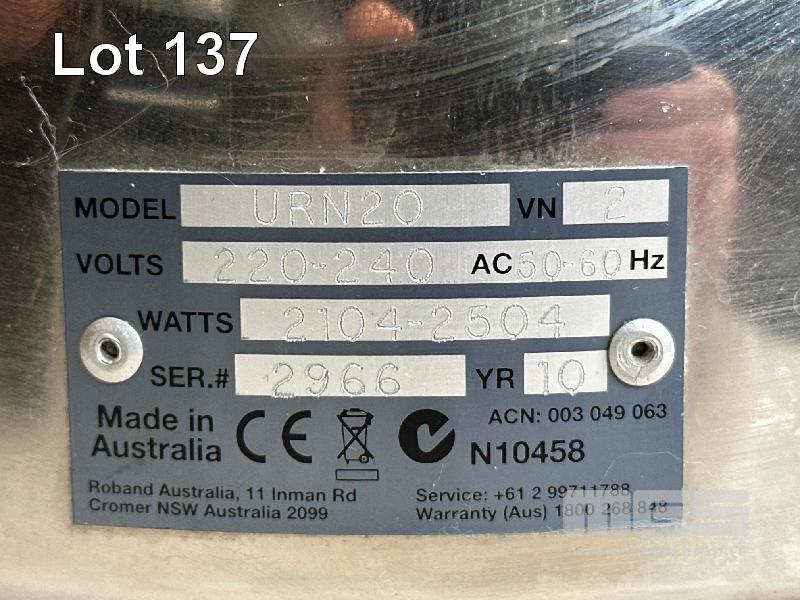 HOT WATER URN, ROBAND MOD: URN20 DOM: 2010 240V, 10 AMP