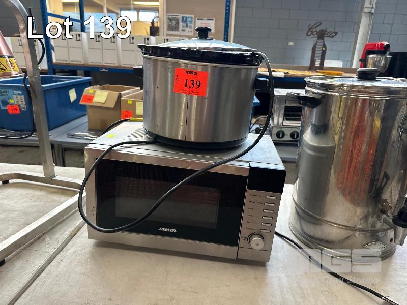 SLOW COOKER, HOMEMAKER MOD: AP136A 240V, 10 AMP MICROWAVE, HELLER MOD: HMW2055 240V, 10 AMP