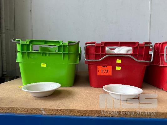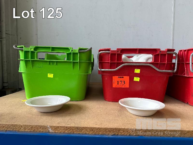 100 (APPROX) x SMALL SERVING BOWLS, 15cm 2 x CRATES