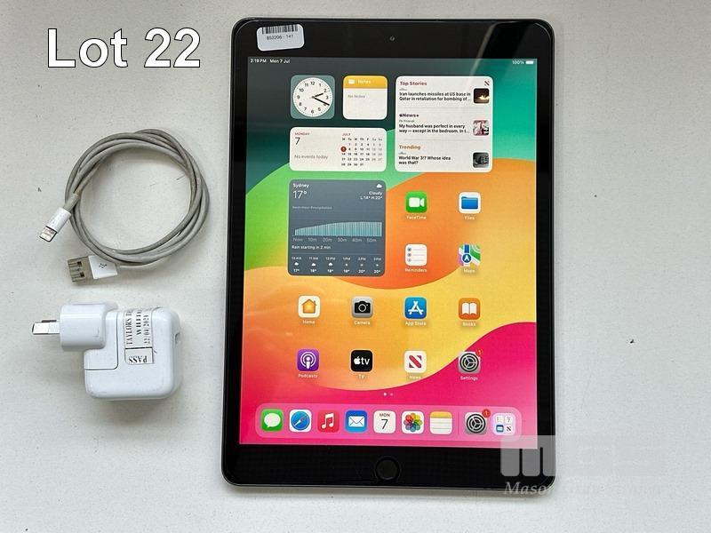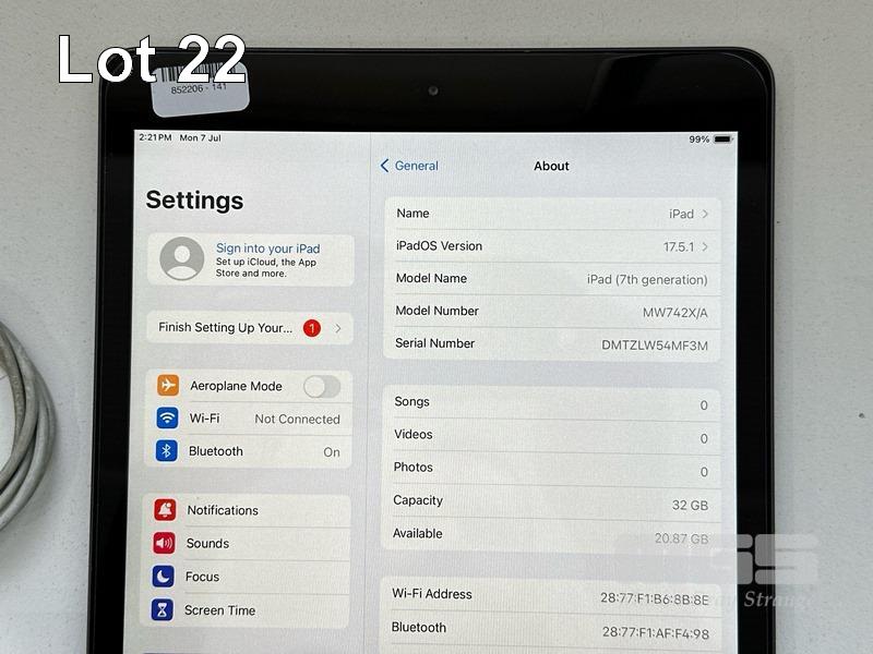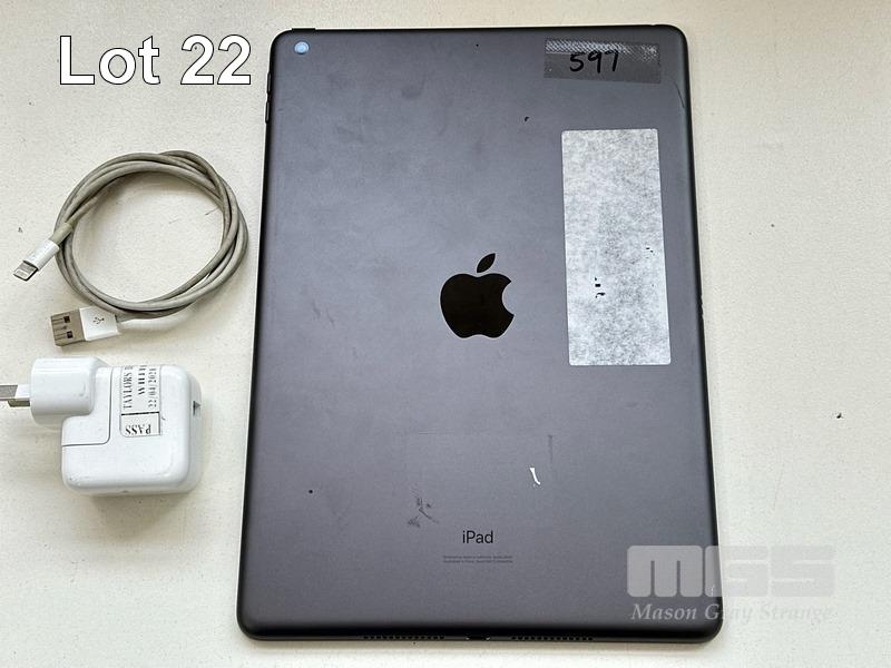 APPLE iPAD 7TH GEN, 32GB, Wi-Fi, SPACE GREY, MODEL MW742X/A, A2197 WITH CABLE & CHARGER (NOTE: MINOR SCRATCHES ON SCREEN) S/N:DMTZLW54MF3M