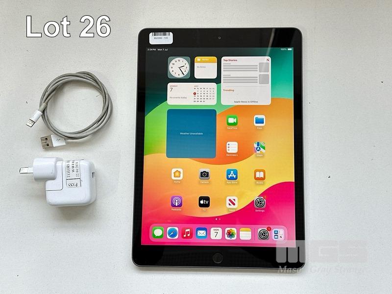 APPLE iPAD 7TH GEN, 32GB, Wi-Fi, SPACE GREY, MODEL MW742X/A, A2197 WITH CABLE & CHARGER (NOTE: MINOR SCRATCHES ON SCREEN) S/N:DMQZKKHSMF3M