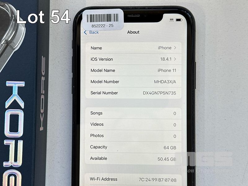 APPLE iPHONE 11, 64GB, MODEL MHDA3X/A, A2221, BLACK, BATTERY HEALTH 82% WITH CASE (NO CABLE, NO CHARGER) S/N:DX4GN7P5N735