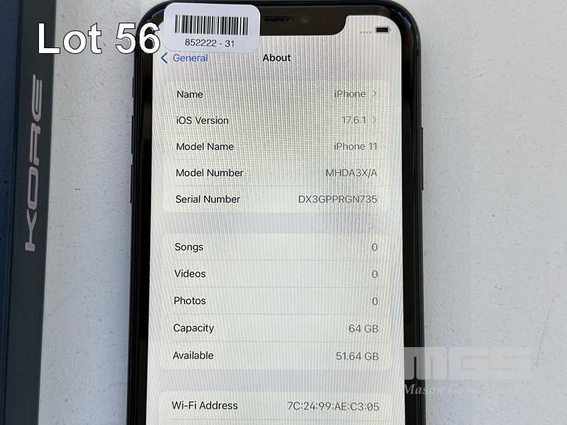APPLE iPHONE 11, 64GB, MODEL MHDA3X/A, A2221, BLACK, BATTERY HEALTH 82% WITH CASE (NO CABLE, NO CHARGER) S/N:DX3GPPRGN735