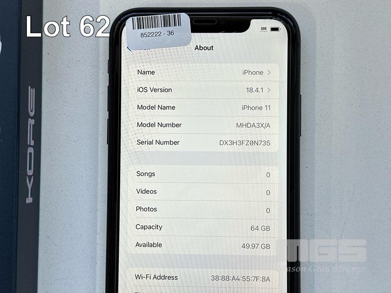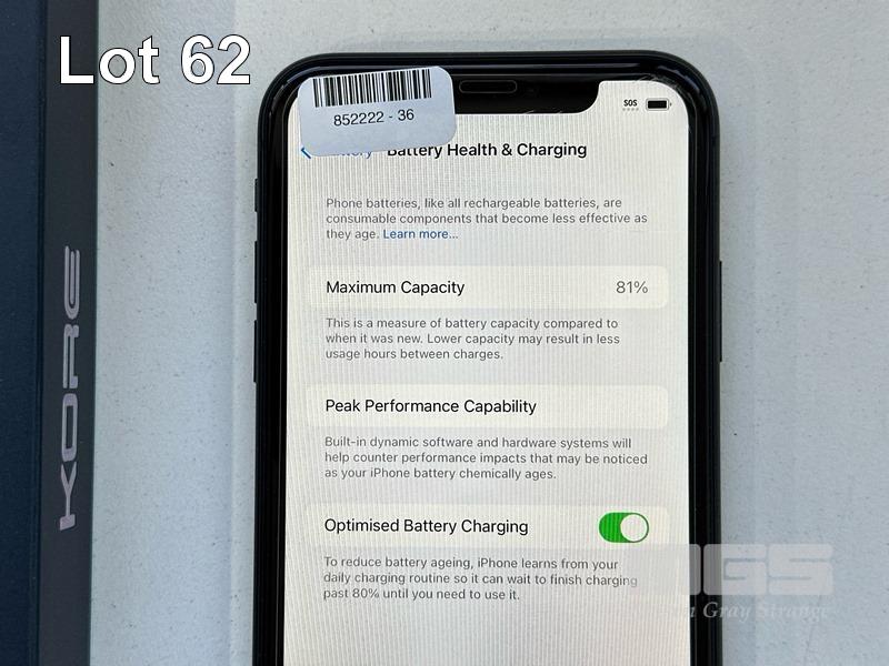 APPLE iPHONE 11, 64GB, MODEL MHDA3X/A, A2221, BLACK, BATTERY HEALTH 81% WITH CASE (NO CABLE, NO CHARGER) S/N:DX3H3FZ0N735