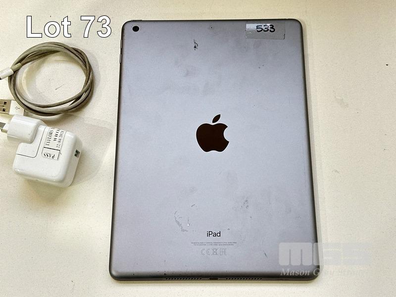 APPLE iPAD 6TH GEN, 32GB, Wi-Fi, SPACE GREY, MODEL MR7F2X/A, A1893 WITH CABLE & CHARGER (NOTE: MINOR SCRATCHES ON SCREEN) S/N:DMQXCCSHJF8J