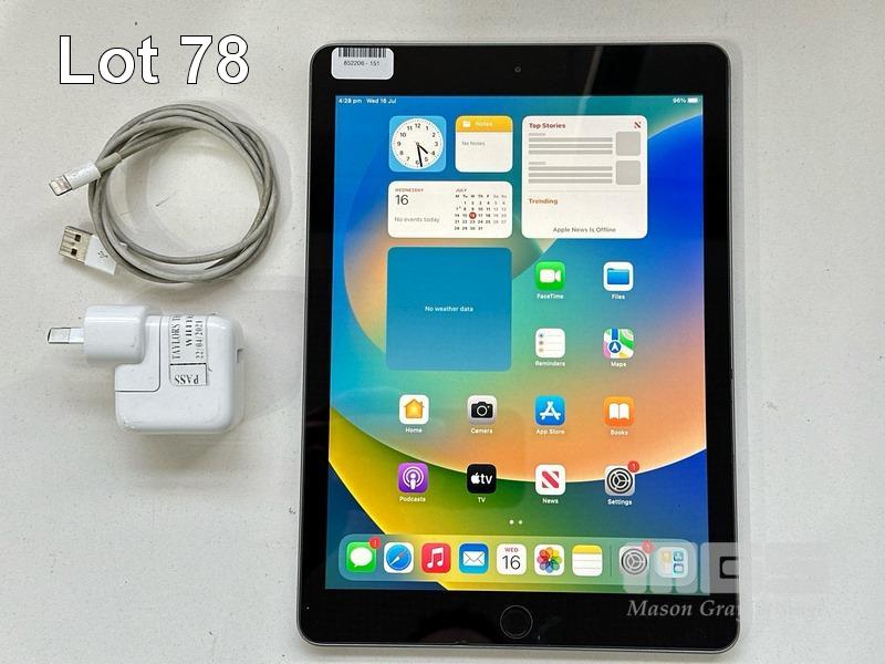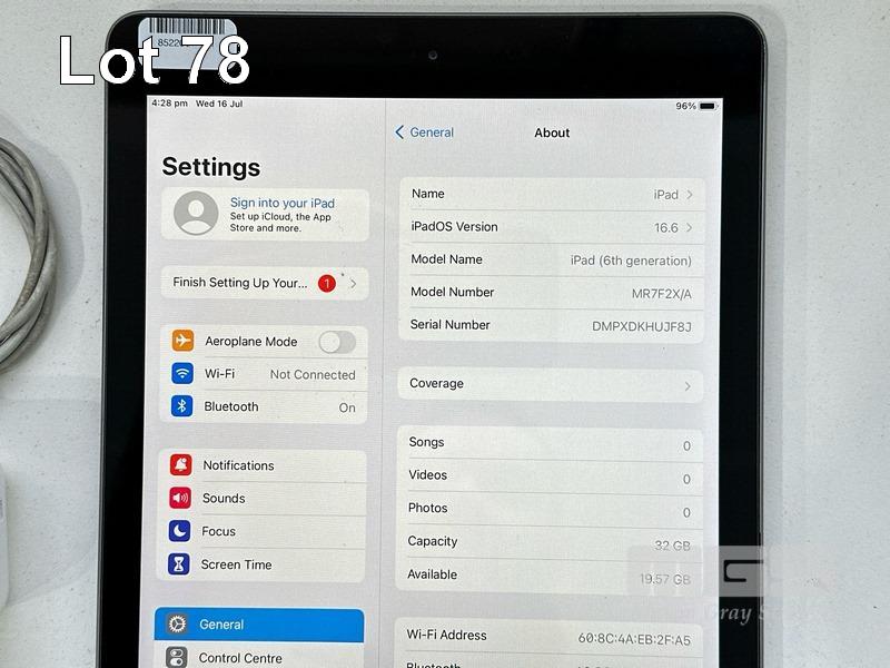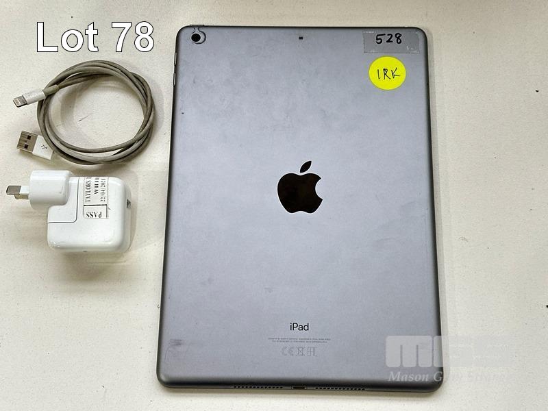 APPLE iPAD 6TH GEN, 32GB, Wi-Fi, SPACE GREY, MODEL MR7F2X/A, A1893 WITH CABLE & CHARGER (NOTE: MINOR SCRATCHES ON SCREEN) S/N:DMPXDKHUJF8J