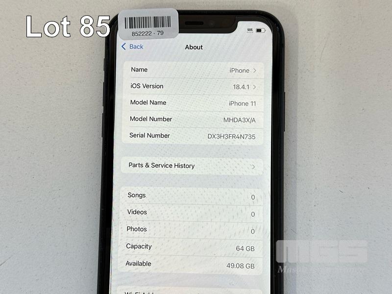 APPLE iPHONE 11, 64GB, MODEL MHDA3X/A, A2221, BLACK, BATTERY HEALTH 79% (NO CABLE, NO CHARGER) (NOTE: BATTERY SERVICE MESSAGE) S/N:DX3H3FR4N735