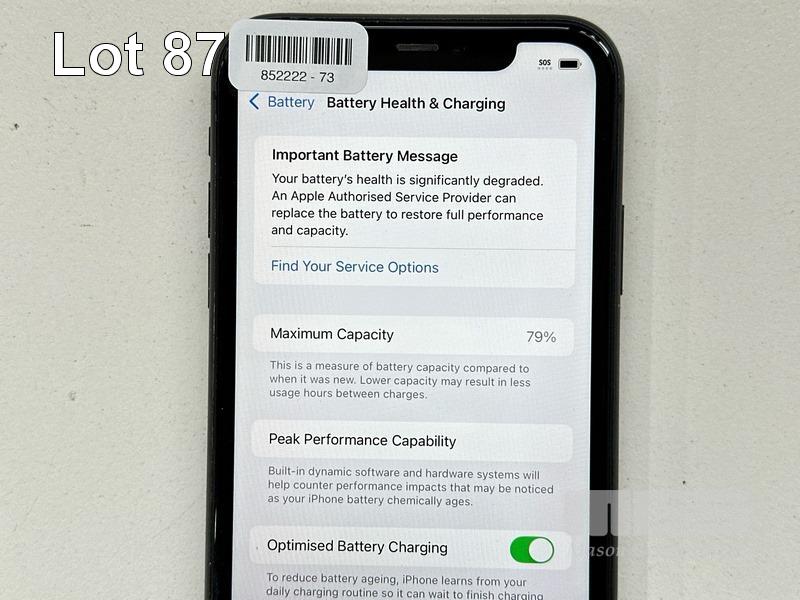 APPLE iPHONE 11, 64GB, MODEL MHDA3X/A, A2221, BLACK, BATTERY HEALTH 79% (NO CABLE, NO CHARGER) (NOTE: BATTERY SERVICE MESSAGE, MINOR SCRATCHES ON SCREEN) S/N:DX3G8BN2N735