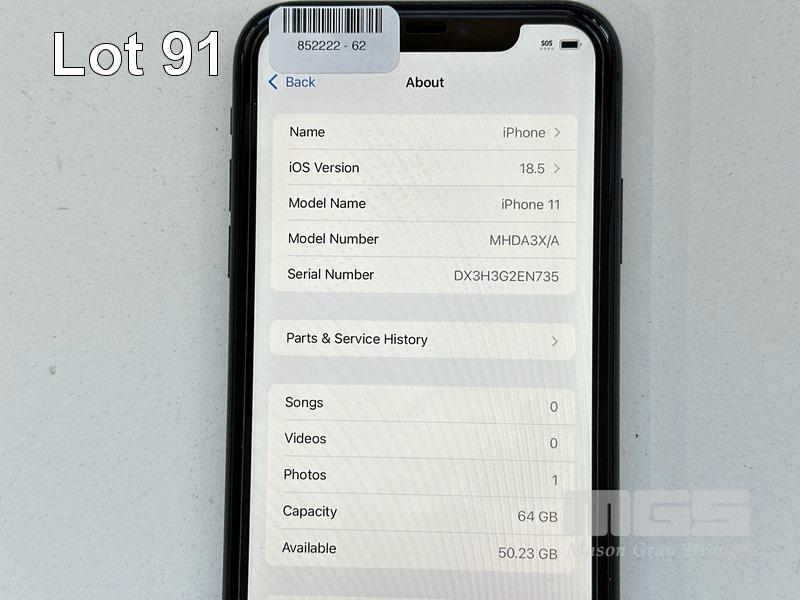 APPLE iPHONE 11, 64GB, MODEL MHDA3X/A, A2221, BLACK, BATTERY HEALTH 78% (NO CABLE, NO CHARGER) (NOTE: BATTERY SERVICE MESSAGE) S/N:DX3H3G2EN735