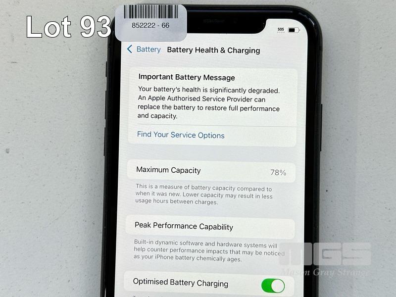APPLE iPHONE 11, 64GB, MODEL MHDA3X/A, A2221, BLACK, BATTERY HEALTH 78% (NO CABLE, NO CHARGER) (NOTE: BATTERY SERVICE MESSAGE) S/N:DX4GN6QWN735