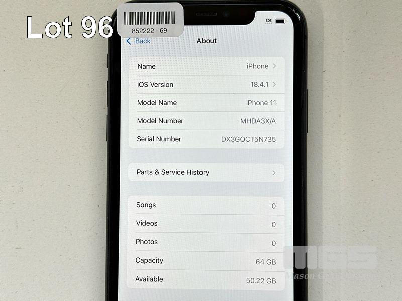 APPLE iPHONE 11, 64GB, MODEL MHDA3X/A, A2221, BLACK, BATTERY HEALTH 78% (NO CABLE, NO CHARGER) (NOTE: BATTERY SERVICE MESSAGE, MINOR SCRATCHES ON SCREEN) S/N:DX3GQCT5N735