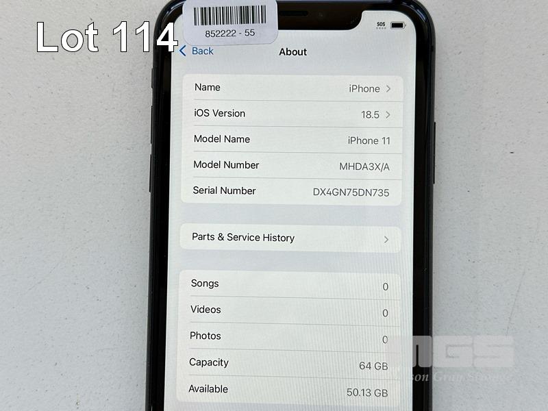 APPLE iPHONE 11, 64GB, MODEL MHDA3X/A, A2221, BLACK, BATTERY HEALTH 75% (NO CABLE, NO CHARGER) (NOTE: BATTERY SERVICE MESSAGE) S/N:DX4GN75DN735
