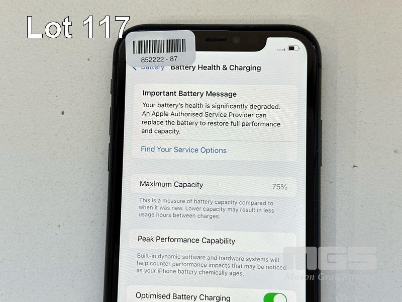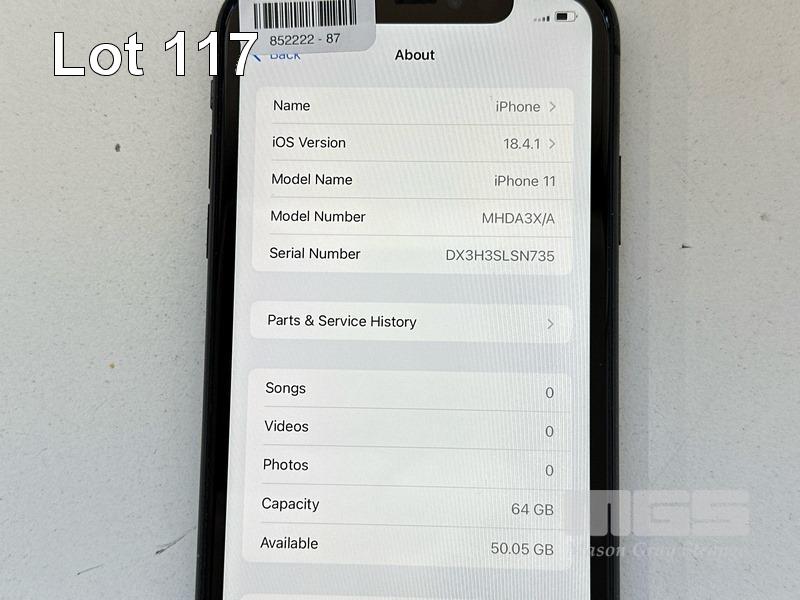 APPLE iPHONE 11, 64GB, MODEL MHDA3X/A, A2221, BLACK, BATTERY HEALTH 75% (NO CABLE, NO CHARGER) (NOTE: BATTERY SERVICE MESSAGE, MINOR SCRATCHES ON SCREEN) S/N:DX3H3SLSN735
