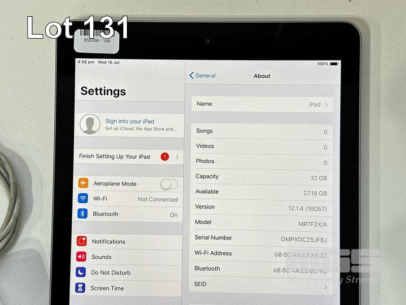 APPLE iPAD 6TH GEN, 32GB, Wi-Fi, SPACE GREY, MODEL MR7F2X/A, A1893 WITH CABLE & CHARGER (NOTE: SCRATCHES ON SCREEN) S/N:DMPXDCZ5JF8J