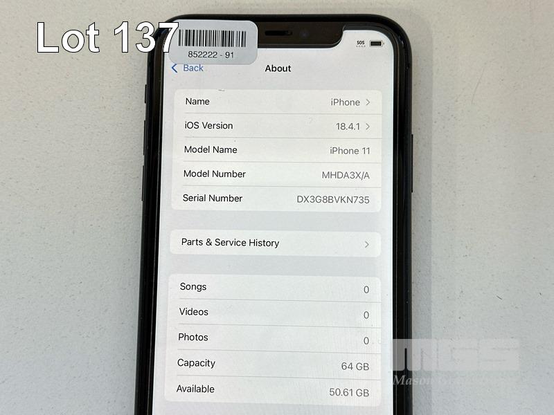 APPLE iPHONE 11, 64GB, MODEL MHDA3X/A, A2221, BLACK, BATTERY HEALTH N/A (NO CABLE, NO CHARGER) (NOTE: BATTERY NOT RECOGNISED MESSAGE) S/N:DX3G8BVKN735