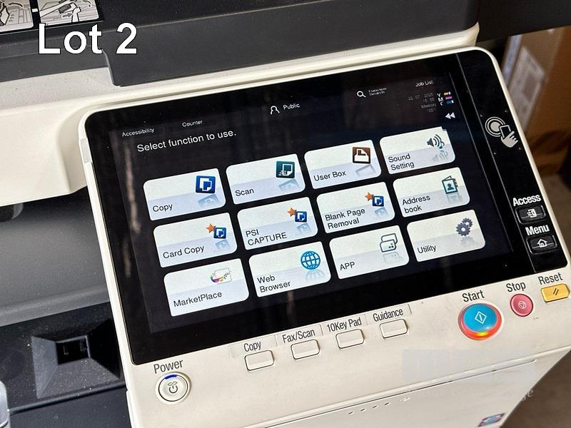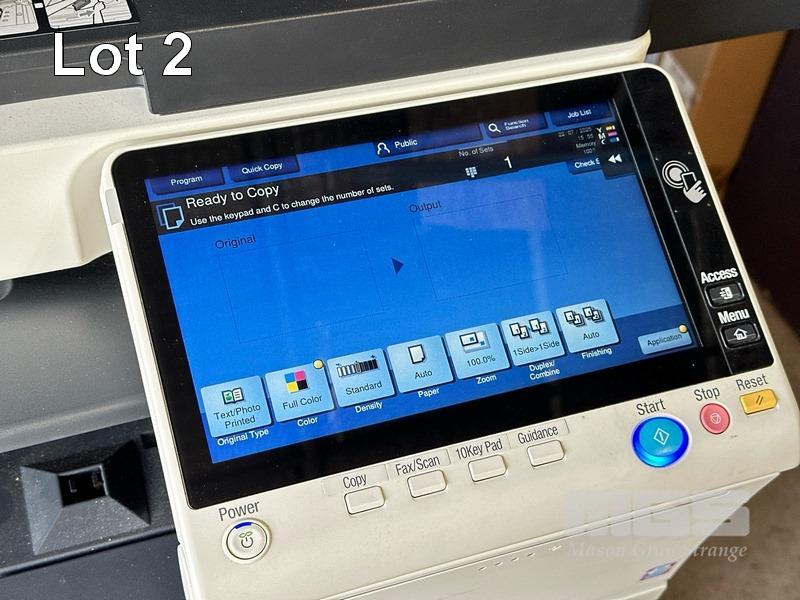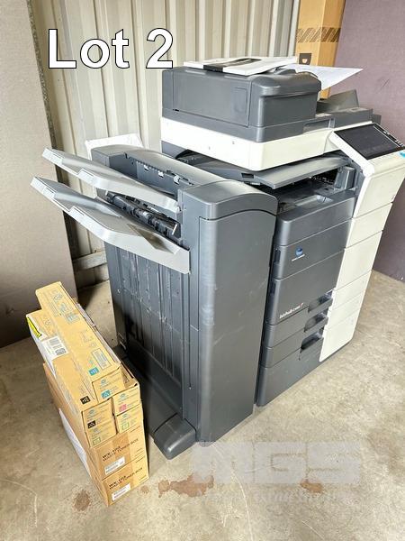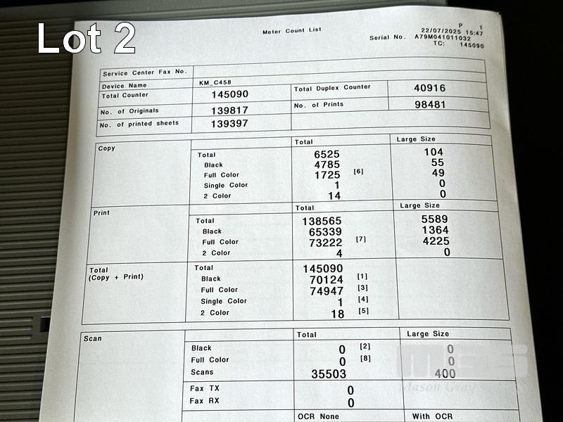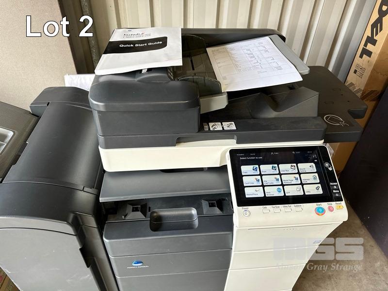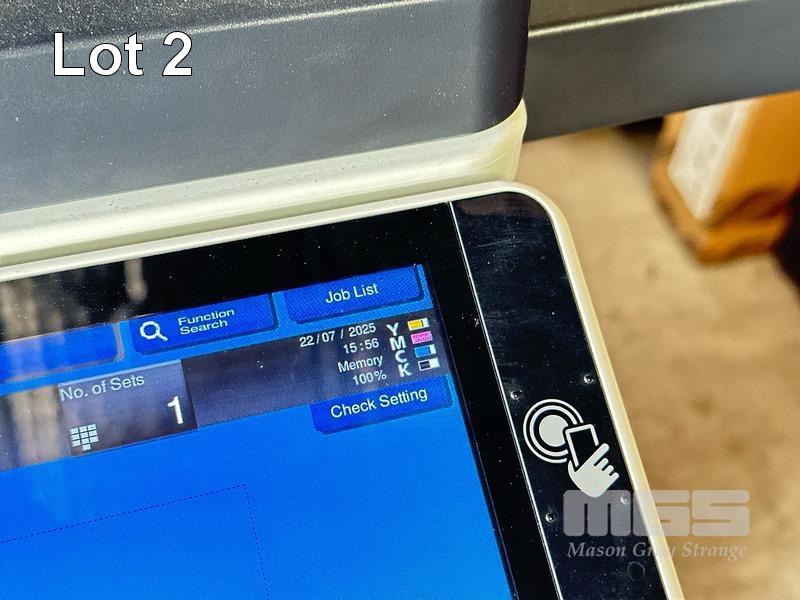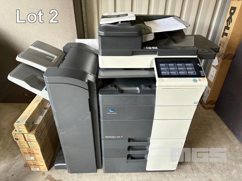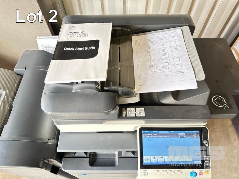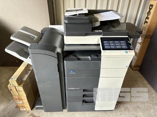PHOTOCOPIER, KONICA MINOLTA BIZHUB C458 COLOUR DIGITAL, ADF, PRINTER USB & NETWORK PORTS, FINISHER (FS-536), SPARE TONER CARTRIDGES, 74,947 COLOUR & 70,124 B&W PAGES (TEST PAGE ATTACHED) S/N:A79M041011032