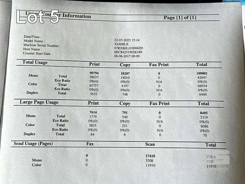 PHOTOCOPIER, SAMSUNG MULTIXPRESS X4300LX COLOUR DIGITAL, ADF, PRINTER USB & NETWORK PORTS, 66,954 COLOUR & 42,047 B&W PAGES (TEST PAGE ATTACHED) (NOTE: IMAGING UNITS LOW) S/N:07RXBJLJ100042D