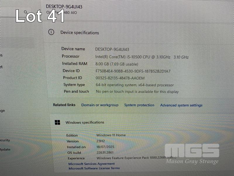 ALL-IN-ONE PC, DELL OPTIPLEX 7480, CORE i5 10500 (10TH GEN) @ 3.1GHz, 8GB DDR4 RAM, 512GB NVMe M.2 SSD, INBUILT 23.8" FHD WIDESCREEN (1920x1080), INTEL HD VIDEO, WEBCAM, 5 x USB, 1 x USB-C, Wi-Fi, BLUETOOTH, WINDOWS 11 HOME INSTALLED, KEYBOARD & MOUSE S/N:6HMWVD3