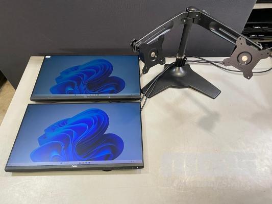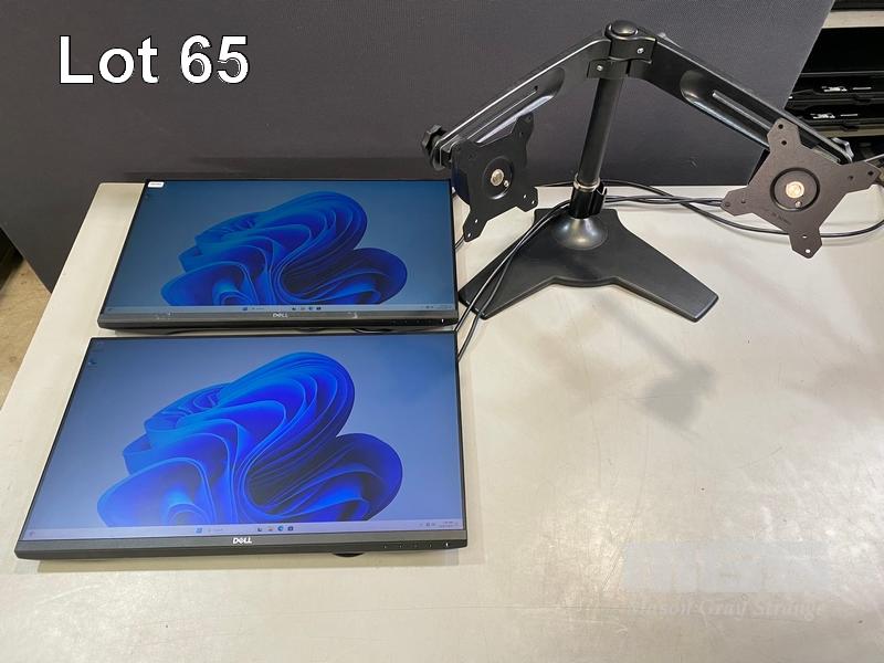 2 x MONITORS, DELL P2419H 23.8" IPS LED WIDESCREEN, HDMI, DISPLAYPORT, VGA (WITH CABLES) (NO HDMI CABLE) WITH FREESTANDING DUAL MONITOR STAND S/N:JM28ZR2, 4415P33