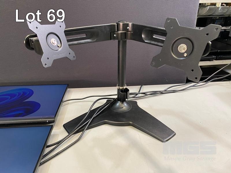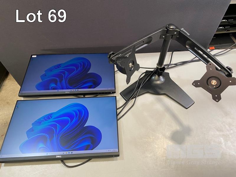 2 x MONITORS, DELL P2419H 23.8" IPS LED WIDESCREEN, HDMI, DISPLAYPORT, VGA (WITH CABLES) (NO HDMI CABLE) WITH FREESTANDING DUAL MONITOR STAND S/N:5618ZR2, 2W08ZR2