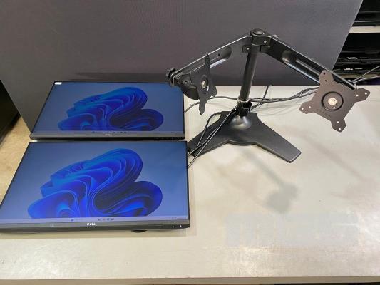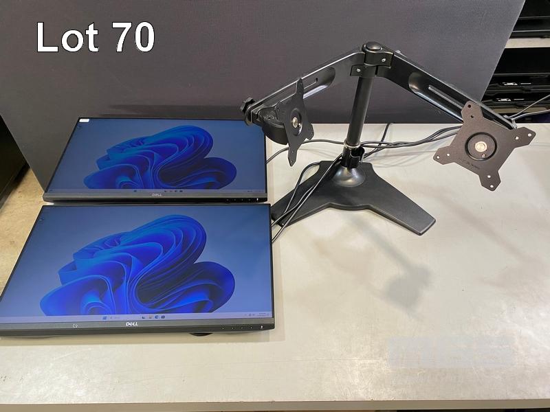 2 x MONITORS, DELL P2419H 23.8" IPS LED WIDESCREEN, HDMI, DISPLAYPORT, VGA (WITH CABLES) (NO HDMI CABLE) WITH FREESTANDING DUAL MONITOR STAND S/N:7518ZR2, 5R28ZR2