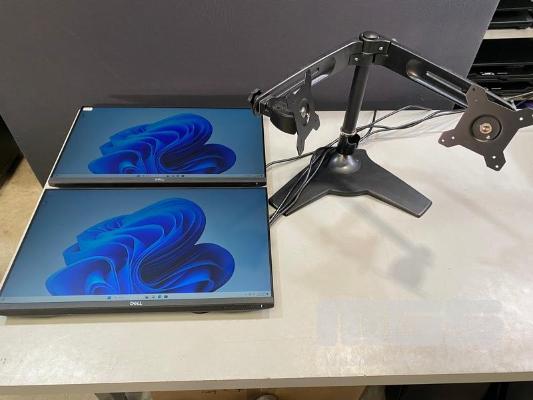 2 x MONITORS, DELL P2419H 23.8" IPS LED WIDESCREEN, HDMI, DISPLAYPORT, VGA (WITH CABLES) (NO HDMI CABLE) WITH FREESTANDING DUAL MONITOR STAND S/N:GN15P33, FS15P33