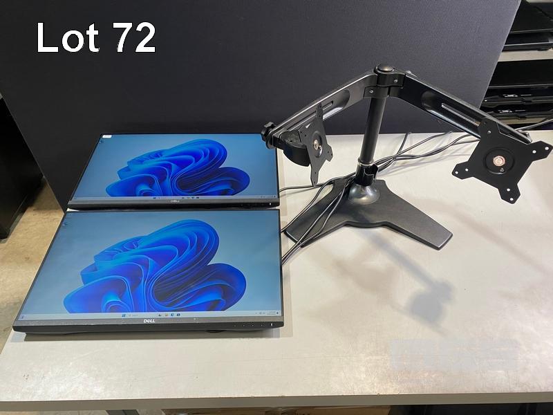 2 x MONITORS, DELL P2419H 23.8" IPS LED WIDESCREEN, HDMI, DISPLAYPORT, VGA (WITH CABLES) (NO HDMI CABLE) WITH FREESTANDING DUAL MONITOR STAND S/N:D615P33, FR05P33