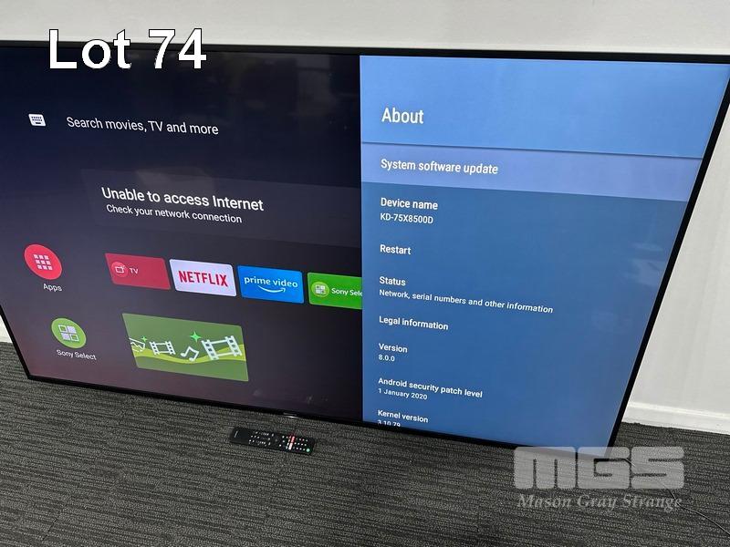 SONY BRAVIA 75" 4K SMART LED TV, KD-75X8500D WITH REMOTE (NO STAND) S/N:7009260