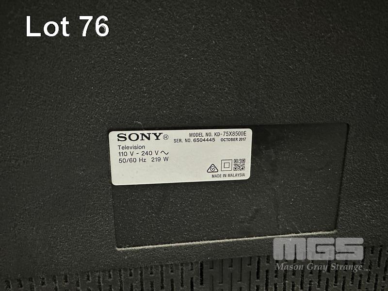 SONY BRAVIA 75" 4K SMART LED TV, KD-75X8500E WITH REMOTE (NO STAND) (NOTE: SCRATCHES ON SCREEN) S/N:6504445