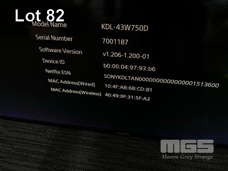 SONY BRAVIA 43" FULL HD SMART LED TV WITH POWER SUPPLY, KDL-43W750D (NO REMOTE, NO STAND) S/N:7001187