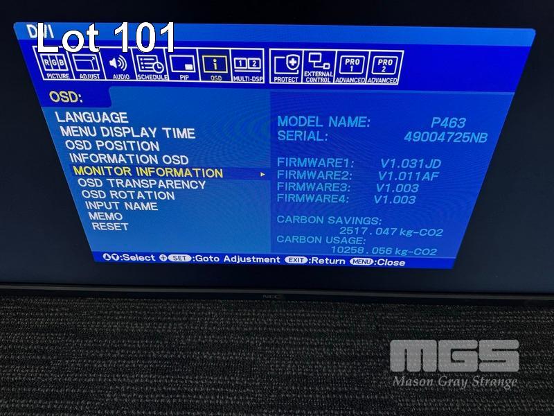 MONITOR, NEC MULTISYNC P463 46" COMMERCIAL LCD DISPLAY (NO REMOTE, NO STAND) S/N:49004725NB