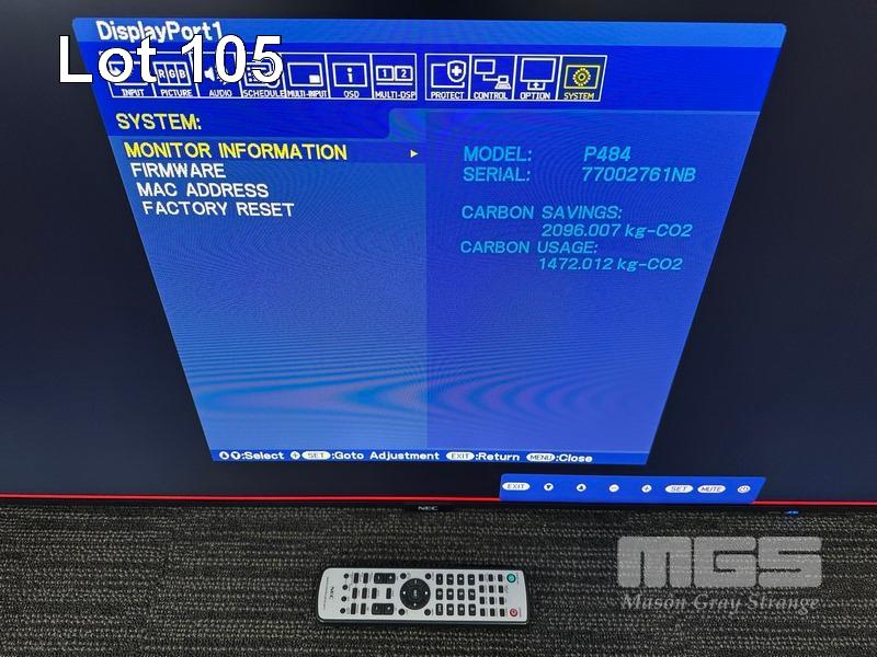 MONITOR, NEC MULTISYNC P484 48" COMMERCIAL LCD DISPLAY WITH REMOTE (NO STAND) S/N:77002761NB
