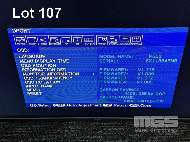 MONITOR, NEC MULTISYNC P553 55" COMMERCIAL LCD DISPLAY WITH WALL MOUNT BRACKET (NO REMOTE, NO STAND) S/N:6X113645NB