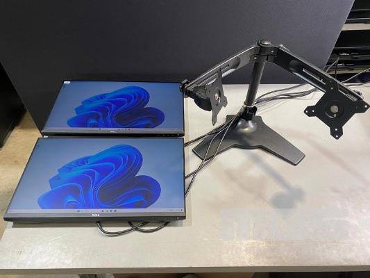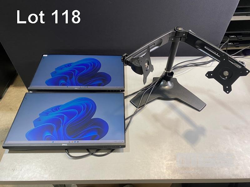 2 x MONITORS, DELL P2419H 23.8" IPS LED WIDESCREEN, HDMI, DISPLAYPORT, VGA (WITH CABLES) (NO HDMI CABLE) WITH FREESTANDING DUAL MONITOR STAND S/N:6P28ZR2, DQ28ZR2