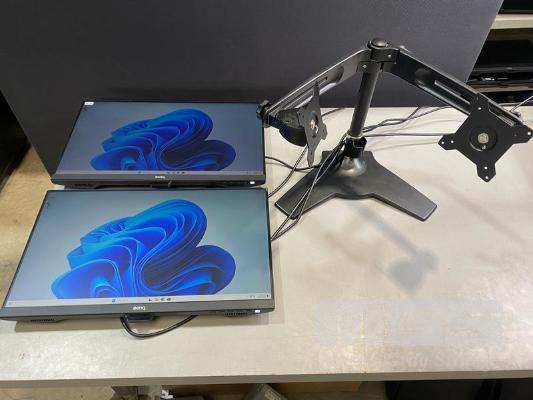 2 x MONITORS, BENQ GW2480 23.8" IPS LED WIDESCREEN, HDMI, DISPLAYPORT, VGA (WITH CABLES) (NO HDMI CABLE) WITH FREESTANDING DUAL MONITOR STAND