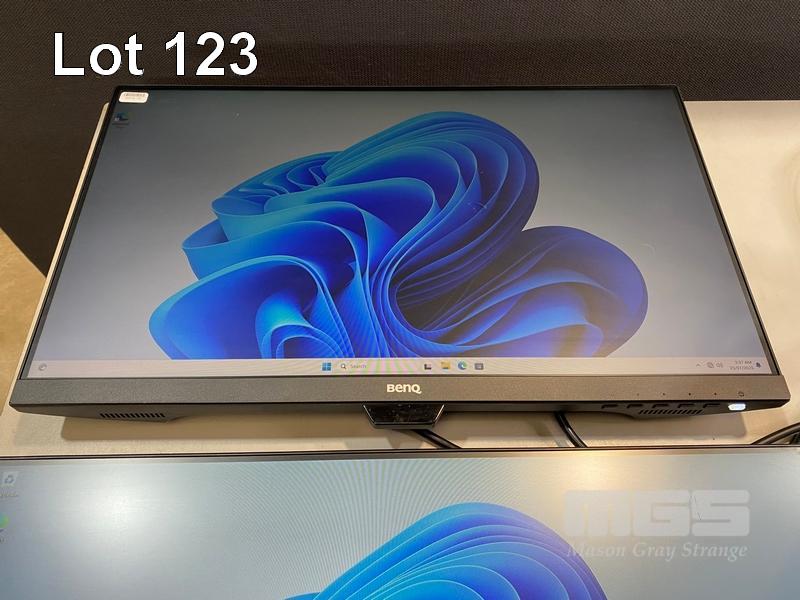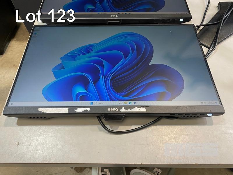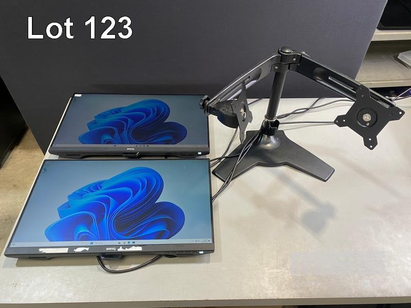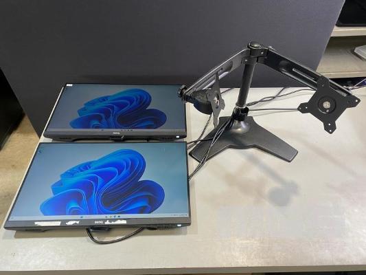 2 x MONITORS, BENQ GW2480 23.8" IPS LED WIDESCREEN, HDMI, DISPLAYPORT, VGA (WITH CABLES) (NO HDMI CABLE) WITH FREESTANDING DUAL MONITOR STAND (NOTE: SCRATCHES ON BOTH SCREENS)